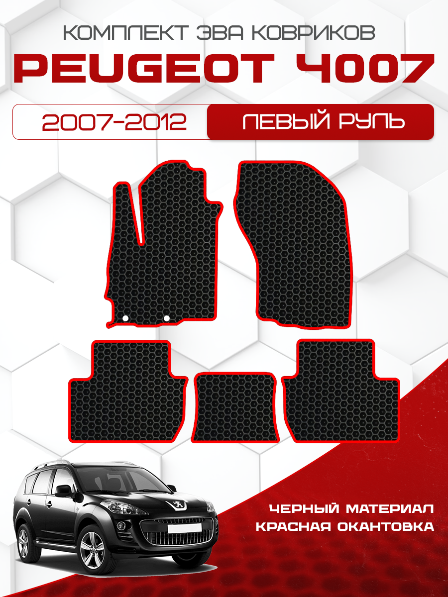 Эва коврики для Peugeot 4007 2007-2012 Левый руль, черный с красной окантовкой(Пежо 4007 2007-2012) Eva, Ева: сравнение цен, характеристики, фото, актуальное наличие и цены.