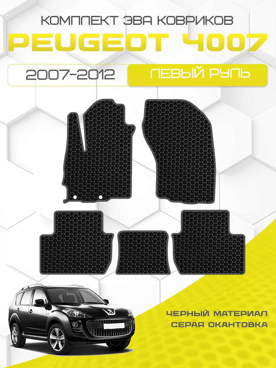 Купить Эва коврики для Peugeot 4007 2007-2012 Левый руль, черный с серой окантовкой(Пежо 4007 2007-2012) Eva, Ева с доставкой по всей России.