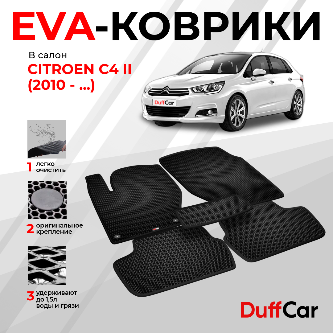 EVA коврики в салон Citroen C4 II (2010 — 2016) / Ситроен С4 2 / черная сота с черным кантом / eva коврики от DuffCar: сравнение цен, характеристики, фото, актуальное наличие и цены.