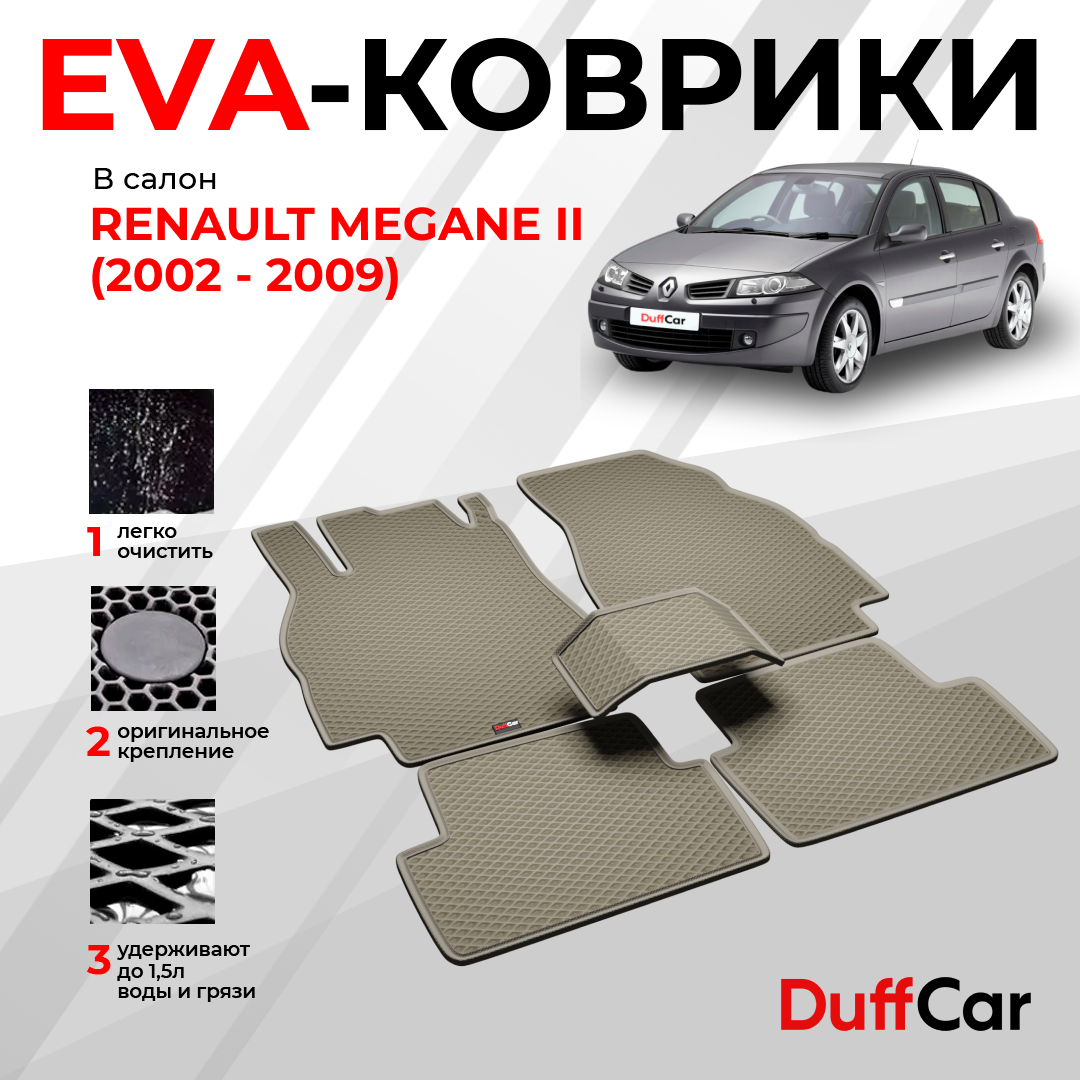 EVA коврики в салон Renault Megane II (2002 — 2009) / Рено Мэган 2 / бежевая сота с бежевым кантом / eva коврики от DuffCar: сравнение цен, характеристики, фото, актуальное наличие и цены.