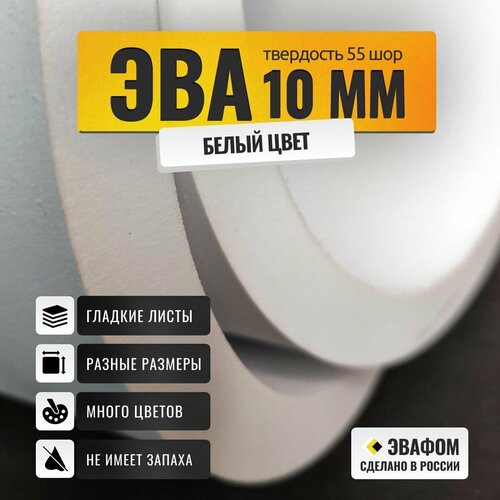 ЭВА лист 2050х1050 мм / белый 10 мм 55 шор / полимер для производства, подошвы и рукоделия: сравнение цен, характеристики, фото, актуальное наличие и цены.