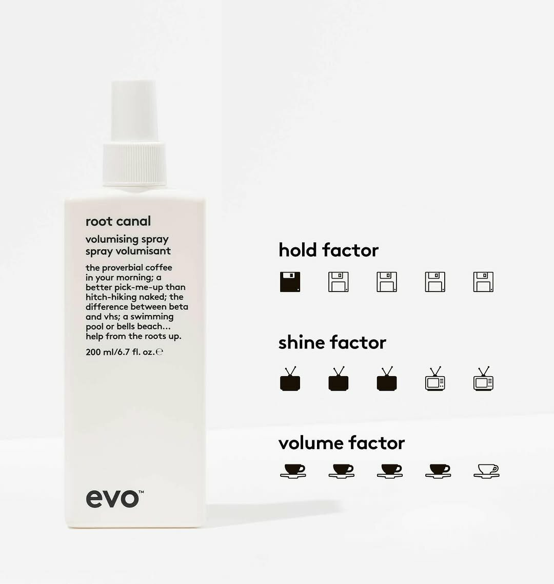evo — австралийский бренд профессиональной косметики для волос, основанный в 2005 году. Основная философия — сочетание результативных формул с экологичностью и юмором в подаче. Продукты не содержат сульфатов, парабенов и искусственных красителей. Среди знаковых средств — сухой шампунь Water Killer, увлажняющий спрей Day of Grace и уходовая линия Fabuloso для поддержания цвета между окрашиваниями. Упаковка оформлена в минималистичном стиле с характерными саркастическими описаниями. Бренд сотрудничает с салонами по всему миру и активно поддерживает программы по сокращению пластика.