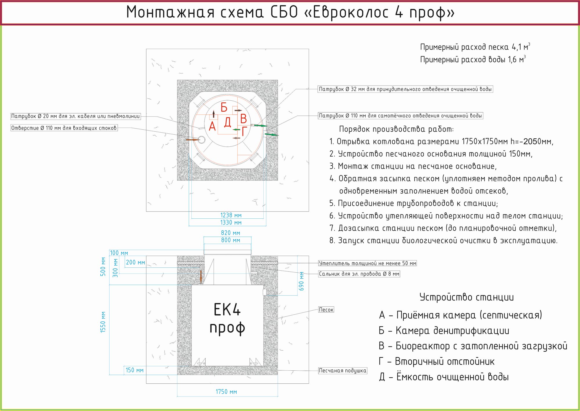 Евроколос ПРОФ 4+, Станция глубокой биологической обработки, септик, с принудительным и самотёчным выбросом
