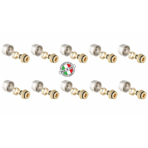 Латунный фитинг с накидной гайкой и обжимным кольцом для подключения металлополимерной трубы к коллектору VALTEC с выходами диаметром 3/4", стандарт соединения – «евроконус».