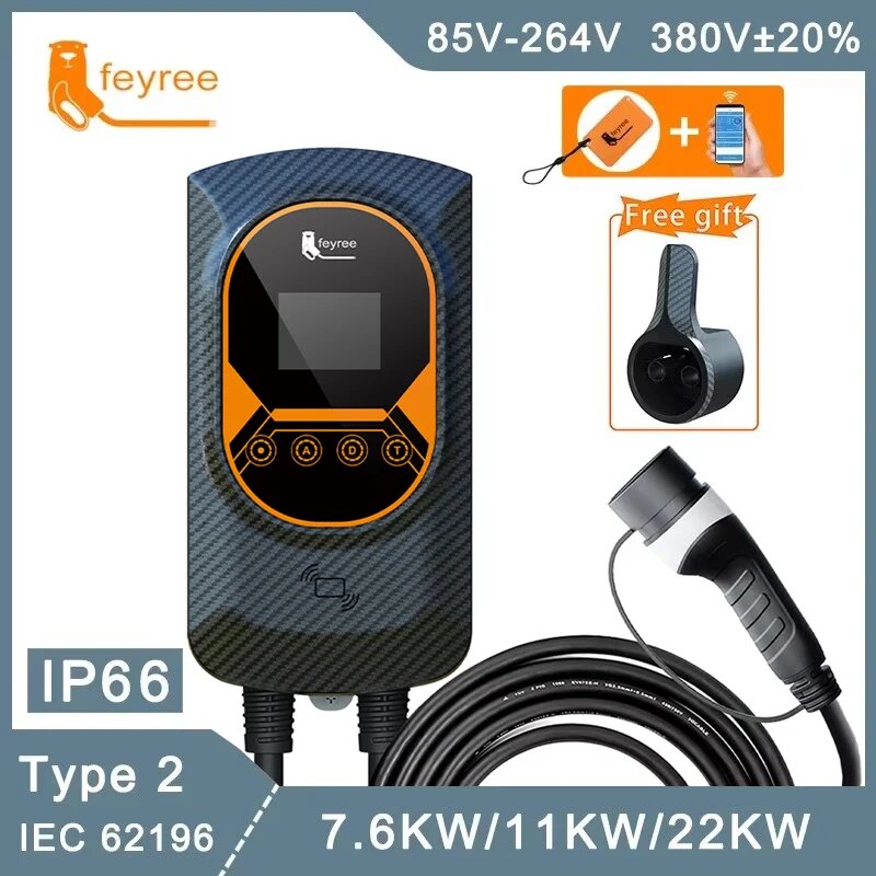 Купить EVSE Wallbox Type2 Кабель 32A 7.6KW Автомобильное зарядное устройство EV 11KW 22KW 3-фазная зарядная станция APP RFID-карты Управление для электромобиля, 22KW 32A 3 Phase с доставкой по всей России.