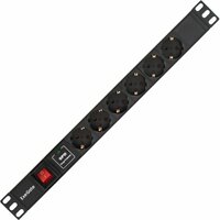 Тип: Блок розеток; Цвет: черный; Количество розеток: 6 розеток; Шторки на розетках: есть; Отдельный выключатель для каждой розетки: нет; Максимальный ток нагрузки: 10 А; Функции защиты подключаемых устройств: н/д; Индикация: индикация включения; ЖК-дисплей: нет; Кабелеукладчик: нет; Прочие особенности и свойства: Кабель для подключения к электросети - Приобретается отдельно, Высота 1U, Установка в стойку 19", Выключатель с подсветкой и крышкой, C заземлением, Вход питания IEC-320-C14 (компьютерная розетка)