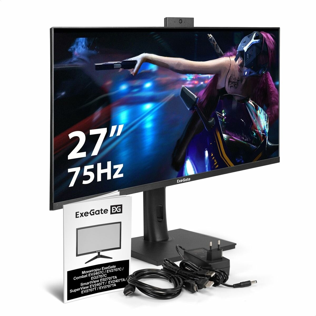 Комплект поставки: Монитор, инструкция, кабели HDMI + USB, адаптер питания, подставка