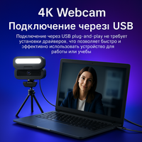 EXHQDR 4K веб-камера с крышкой для конфиденциальности предлагает высокое качество изображения и удобство использования.