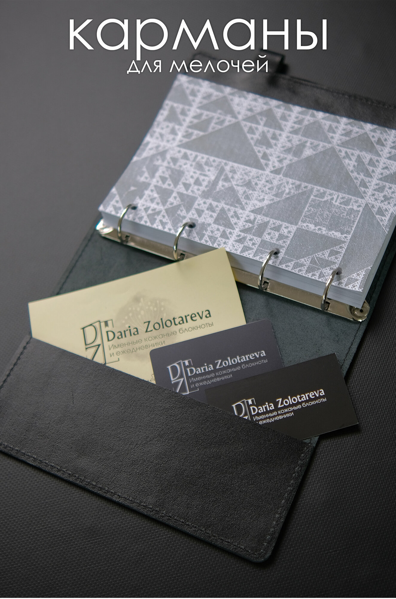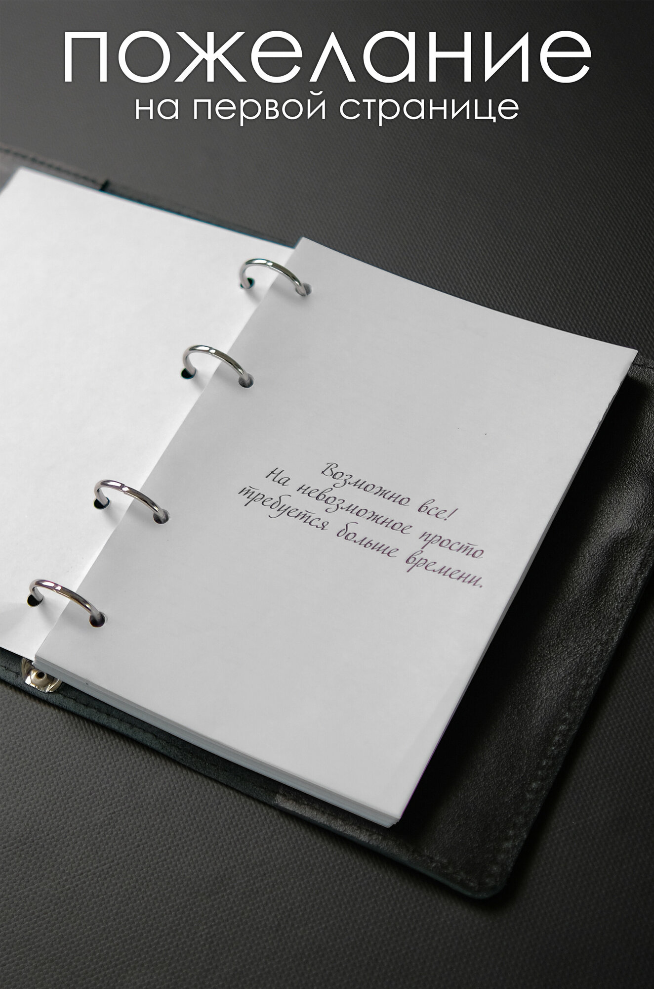 Кожаный ежедневник мужской подарочный на кольцах выполнен из высококачественной натуральной кожи. Ежедневник на кольцах в кожаной обложке представит собой идеальный подарок мужчине на Новый год 2023. Ежедневник из кожи имеет внутри карманы справа и слева для хранения необходимых карт, купюр, бумаг. В правой части ежедневника есть петелька для ручки. Это очень удобно, ручка всегда будет на месте и никогда не потеряется. Стоит обратить особое внимание, что сам ежедневник на резинке, что предотвратит раскрытие в самый неподходящий момент. Такой блокнот ежедневник подарочный мужской очень удобно носить в сумке или портфеле. Ежедневник кожаный черный Элегант на кольцах с лазерной гравировкой на обложке , закрывается на резинку. Кожаный именной ежедневник выполнен из натуральной Итальянской кожи КРС. Полностью ручная работа, дизайнерские форзацы, лазерная гравировка на обложке ежедневника. В кожаном блокноте 100 листов плотностью 80 г/ м2, формат А5. Блок линия на кольцах. При обращении в нашу мастерскую мы можем изготовить полностью именной кожаный ежедневник или блокнот с Вашими надписями, инициалами, именным блоком, подарочной именной коробкой. Наше производство более 8 лет производит кожаные именные изделия блокноты, ежедневники, планеры, органайзеры, подарочные наборы именные. Кожаный блокнот мужской подарочный упаковывается в картонную подарочную коробку. Кожаный именной блокнот на кольцах из черной кожи с гравировкой мотивационной. Подарочный ежедневник эффектный и полезный подарок для любимого, мужа, папы, коллеге! Блокнот на кольцах изготовлен из натуральной кожи толщиной 2,2 мм. Внутренний блок ежедневника 100 листов в линейку, на металлических разъемных кольцах. Блокноты и ежедневники на кольцах отличное решение, листы можно менять неограниченное количество раз. В дальнейшем блоки для кожаного планера можно приобрести в любом канцелярском магазине. Наш кожаный ежедневник органайзер блокнот может быть именным, достаточно обратиться в нашу мастерскую. Именные подарки из натуральной кожи идеальное решение для любого праздника. Великолепный подарок на Новый год 2023 мужчине, брату, начальнику ежедневник на кольцах. Такой дорогой подарок для родных находка! Особенно ценен такой подарок корпоративному клиенту, боссу или руководителю. В наших ежедневниках под заказ может быть не только именная гравировка, но именной блок листов с персональным пожеланием и фото. Полезный подарок преподавателю, учителю. Интересный подарок на день учителя, 1 сентября, выпускной. Блокнот мужчине, незаменимый аксессуар. Ежедневник для руководителя. Подарок мужу, подарок на кожаную свадьбу. Планер блокнот для руководителя Ежедневник на кольцах а5 сменный. Ежедневник недатированный датированный. Записная книжка в кожаной обложке премиальный подарок. Выбирайте канцтовары, блокноты, планеры по акции и радуйте дорогих вам людей. Солидный подарок учителю. Ежедневник с надписью. Записная книжка учителя, Планер учителю из кожи. Блокнот преподавателю для записей прослужит своему обладателю долгие годы. Ежедневник с гравировкой именной. Ежедневник подарочный открытка. Блокнот черный кожаный. Планер ежедневник - незаменимая вещь для деловых и современных людей, которые любят планировать свое время и задачи на неделю. Подарочный бокс с ежедневни