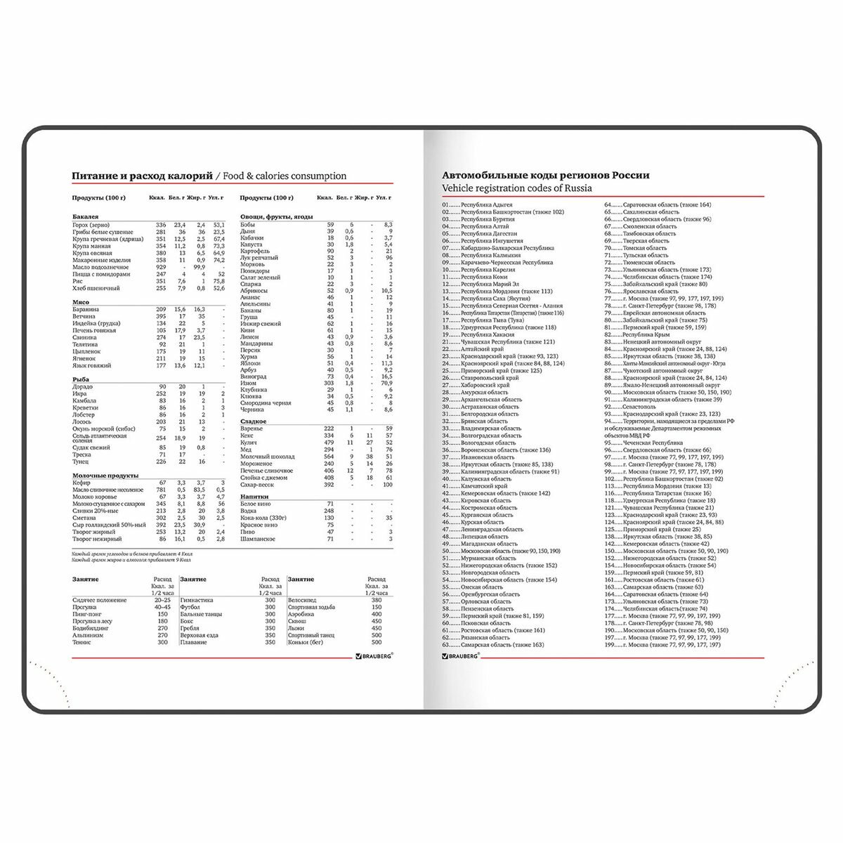 | Особенности | держатель для ручки, закругленные углы, календарь, ляссе, перфорация уголков, поля, прошивка по периметру обложки, справочная информация, цветной обрез |
