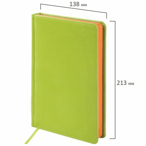 Обложка ежедневника выполнена из качественной искусственной кожи зеленого цвета. Такой материал долговечен и гарантирует долгий срок службы ежедневника.