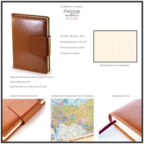 3-352/07 Бренд: BrunoVisconti Готов к персонализации: да Блок: 70 г/кв. м, бежевая бумага Ляссе: бордовое, 7 мм Угол обложки: скругленный Справочная информация: на 21 стр. Строчка на обложке: реальный шов по периметру в цвет материала Корешок: круглый Индивидуальная упаковка: картонный ложемент Блок (размер): 142х204 мм Обложка (размер): 145х210 мм Материал обложки: искусственная кожа Тип обложки: твердая (hard) Печать блока: в 2 цвета Цвет обложки: темно-коричневый Угол блока: скругленный Сменный блок: да Тип блока: недатированный Фиксирующий хлястик: магнитный Формат: А5 Код поставщика: 99011142