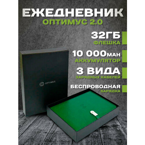 Ежедневник с беспроводной зарядкой и флешкой 32 ГБ, недатированный, 3 кабеля, экокожа, зеленый, А5: сравнение цен, характеристики, фото, актуальное наличие и цены.