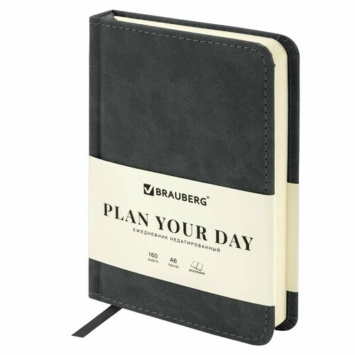 Ежедневник недатированный малый 100х150 мм А6 BRAUBERG "Status", под кожу, 160 л, черный, 113366. Продается набором по (2 шт.) Недатированный ежедневник BRAUBERG "Status" с классической обложкой предназначен для энергичных людей, любящих нестандартные подходы к решению поставленных задач. Внутренний блок включает 160 листов тонированной бумаги плотностью 70 гм2. Каждая страничка имеет перфорированный угол. Благодаря стандартному формату А6 (100х150 мм) ежедневник удобно использовать как в офисе, так и на выездных деловых встречах. Твердая обложка стилизована под фактурную кожу. Подходит для горячего тиснения. Дополнением является закладка-ляссе, с помощью которой при необходимости можно быстро открыть ежедневник на нужной странице.