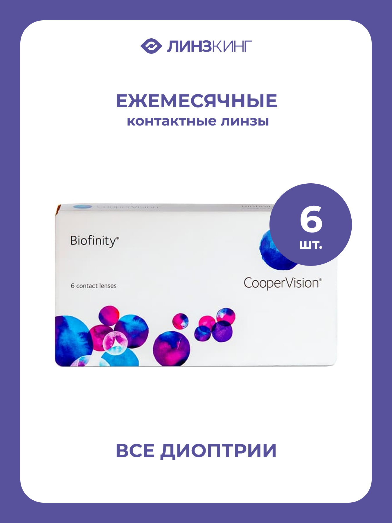 Ежемесячные контактные линзы CooperVision Biofinity 6 pk (BC 8.6; D -7.00): сравнение цен, характеристики, фото, актуальное наличие и цены.