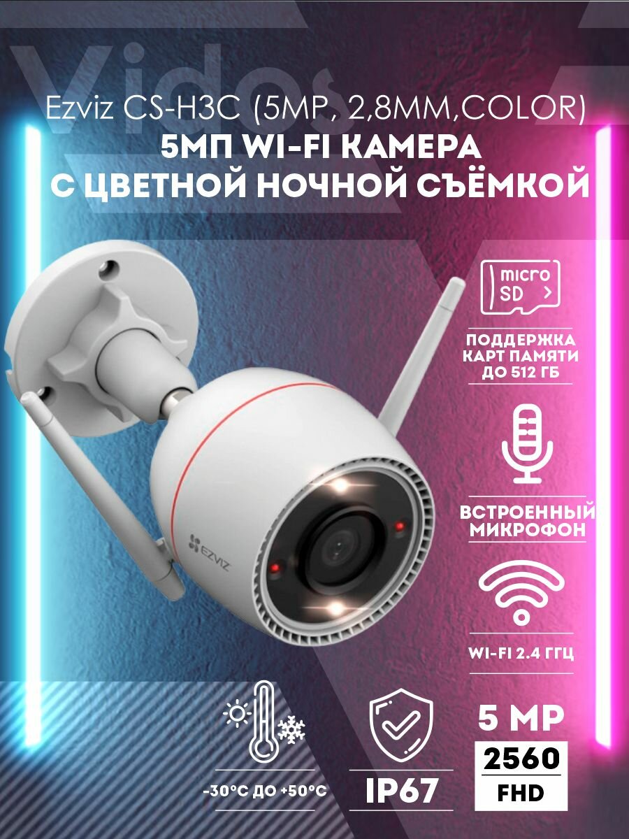Купить EZVIZ CS-H3 (5MP) (2.8 мм) Уличная Wi-Fi камера 5мп, с двусторонней аудиосвязью и цветным ночным изображением с доставкой по всей России. EZVIZ CS-H3 (5MP) (2.8 мм) Уличная Wi-Fi камера 5мп, с двусторонней аудиосвязью и цветным ночным изображением: сравнение цен, характеристики, фото, актуальное наличие и цены.