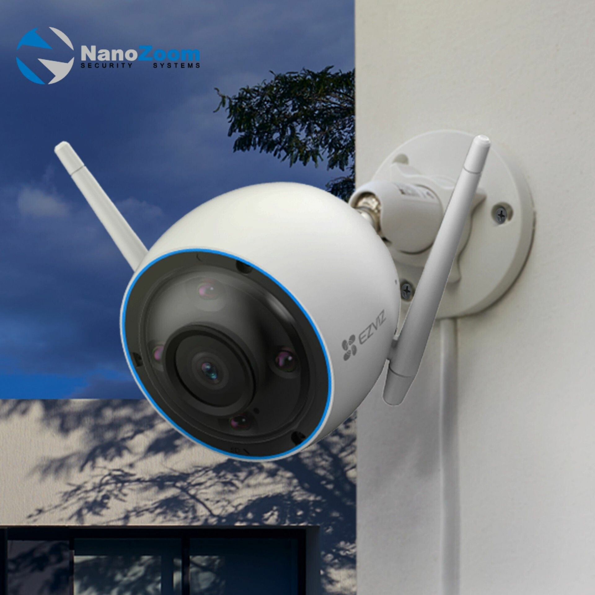 Ezviz H3 - уличная камера Wi-Fi с интеллектуальными возможностями для надежной защиты с высоким разрешением 2880×1620 Quad HD+. Камера подходит для круглосуточной всепогодной съемки. Камера имеет две внешние антенны, которые обеспечивают стабильное WiFi соединение на большие дистанции. Также видеокамеру H3 можно подключить к сети проводным способом, соединив ее с роутером по сетевому кабелю.