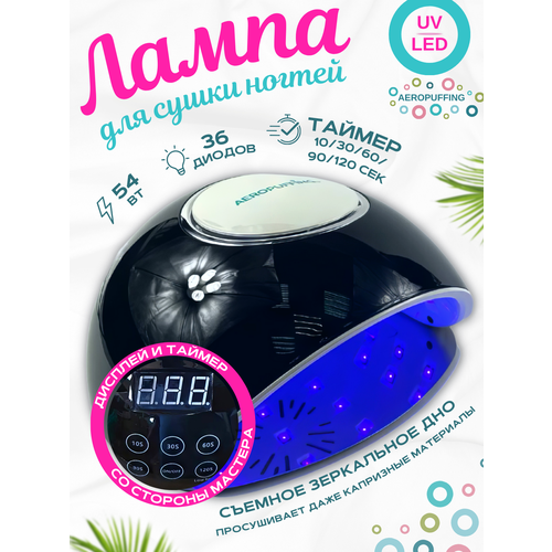 Лампа для маникюра Аэропуфинг для сушки ногтей с технологией двойного источника излучения UV/LED мощностью 54 Вт обеспечивает мгновенную полимеризацию гель-лаков, биогелей и других гель-лаковых покрытий. Обладает двойной функциональностью, сочетая в себе два вида излучения УФ и Лед в отличие от только ультрафиолетовой маникюрной лампы или led лампы сушки ногтей. led лампа для ногтей имеет удобный и эргономичный дизайн. Светодиоды расположены таким образом, что позволяет сушить покрытия одновременно на всех пяти пальцах, обеспечивая быструю и равномерную полимеризацию. Излучение лампы не оказывает вредного воздействия на кожу рук и глаза. Яркость светодиодов остается постоянной на протяжении длительного времени использования - до 50 000 часов. Профессиональная лампа для маникюра F4Plus оснащена сенсорным управлением и таймером на 10, 30, 60, 90 и 120 секунд с опцией Low Heat Mode-режим на кнопке таймера 120S для постепенного повышения мощности излучения и комфортного высыхания гелевых покрытий без чувства жжения. Дополнительно, uv лампа имеет съемное дно на магнитах для удобства работы с педикюром. Технические характеристики гибридной лампы включают в себя: мощность 54 Вт; 36 светодиодов; длина волн 365 nm + 405 nm; датчик движения; LED Digital дисплей; таймер 10, 30, 60, 90, 120 секунд; режим постепенного нагрева Low Heat Mode; размер: 203*200*110 мм; съемное дно: есть; гарантия: 6 месяцев; производство: Китай. Лампа выполнена в цветах: белый, розовый и черный. LED лампа для маникюра профессиональная мощная является неотъемлемым атрибутом для любого мастера маникюра, обеспечивая идеальный результат с минимальными затратами времени и усилий. Работа с этой стильной и функциональной лампой будет в удовольствие, а клиенты останутся довольными.