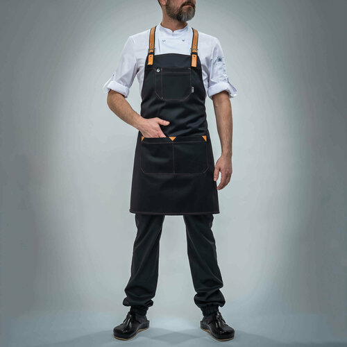 F56BXL - кому надо больше. Фартук F56BXL увеличен в высоту и в ширину до 100 х 104 см. Этот фартук по достоинству оценили повара и официанты в ресторанах и кафе, флористы, барберы, бариста и даже художники. А ещё его часто заказывают для дома и сада или в подарок на торжество или как дополнительный аксессуар к новому кителю. Средней плотности ткань идеально совмещает в себе мягкость, удобство и износостойкость. Ткань является смесовой, в состав входит синтетическая и натуральная основа (полиэстер и хлопок). Нити синтетической основы придают ткани высокий уровень износостойкости, а хлопок гарантирует комфорт и хорошие гигиенические показатели. Использована профессиональная ткань, которая позволяет стирать фартук десятки раз без потери внешнего вида, выцветания и образования катышек. Лямки фартука крестообразные. Они равномерно распределяют нагрузку на плечи, не нагружая шею. Лямки сшиты из износостойкого кожзама и текстильной стропы. Крепятся к фартуку при помощи пряжки и карабинов. Регулировка происходит с помощью пряжек спереди и сзади. Лямка на талии средней длины. Регулируется и фиксируется при помощи пряжки с замком. Карманы присутствуют на груди и талии. Разделены на несколько ячеек, для удобства размещения нужных вещей. Дополнены декоративными деталями из кожзама. Фартук универсален, поэтому подойдет как мужчинам, так и женщинам. Фирменный логотип PITERPROF на нагрудном кармане.