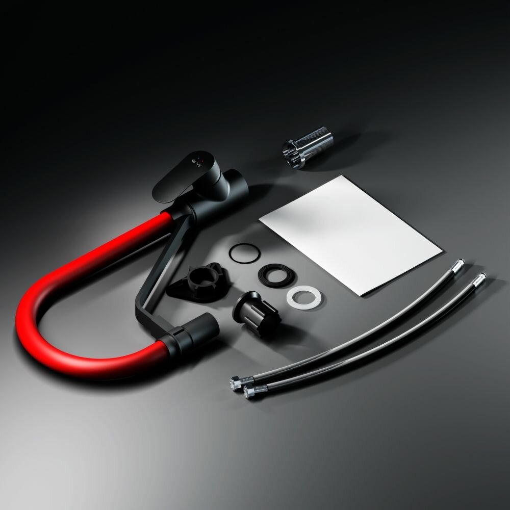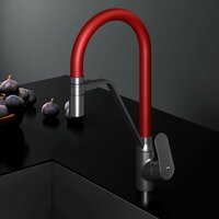 Эффектное сочетание цветов - матовый черный корпус смесителя и красный цвет излива станет ярким дизайнерским решением на кухне.