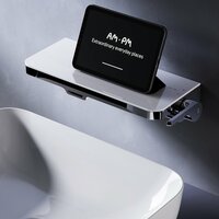 Еще больше полезного пространства: смеситель выполнен в виде вместительной полочки. Внушительный размер полки (35 см) позволяет хранить все любимые средства под рукой, а эстетичный силуэт станет настоящим украшением современной ванной комнаты.