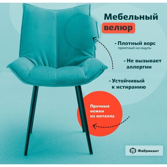Стул Фабрикант осло, комплект 2 шт, велюр антикоготь, светло-бирюзовый, чёрные ножки: сравнение цен, характеристики, фото, актуальное наличие и цены.