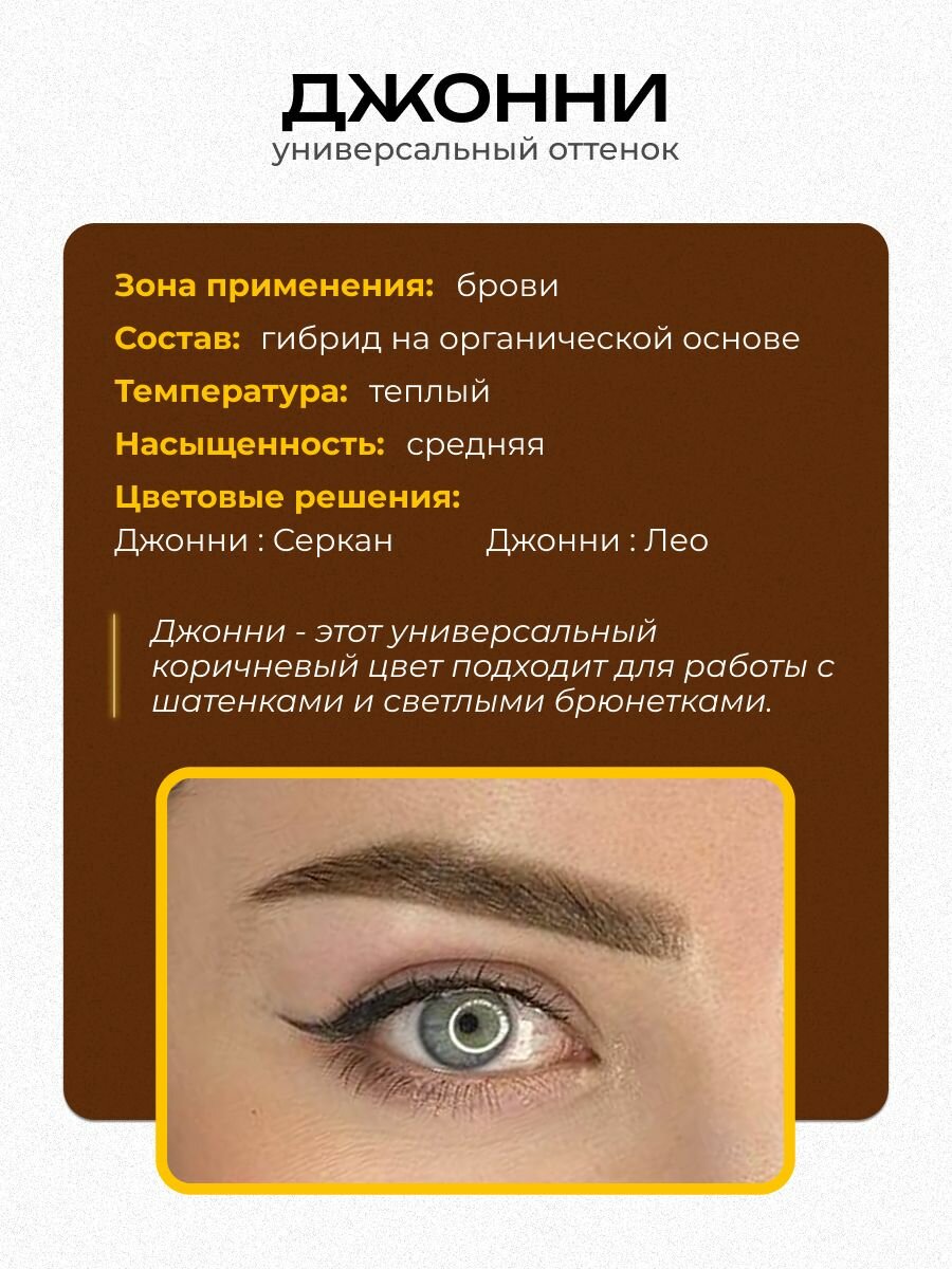 Органический пигмент для перманентного макияжа бровей. Нейтральный коричневый оттенок. Этот универсальный коричневый цвет подходит для работы с шатенками и светлыми брюнетками. - Температура: нейтральный