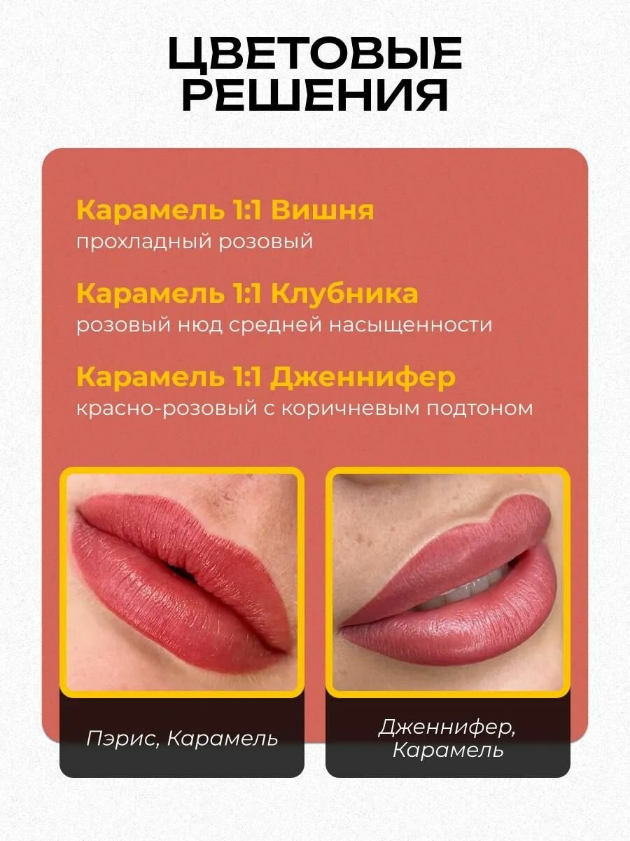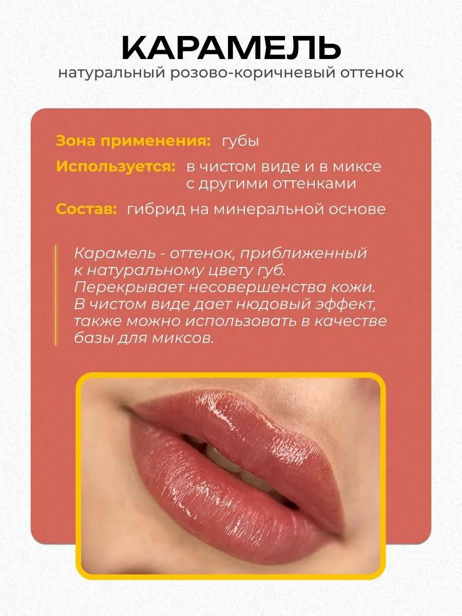Карамель - идеальный естественный цвет губ. Имеет натуральный розово-коричневый оттенок, универсален. В чистом виде используем для создания нюдового эффекта.