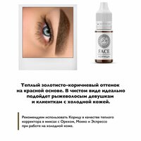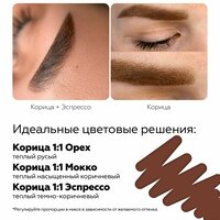 Корица - теплый золотисто-коричневый оттенок на красной основе. Этим оттенком можно утеплить Орех и Мокко для работы на холодной коже. Идеально подходит рыжеволосым девушкам, в чистом виде отлично ложится на холодную кожу.