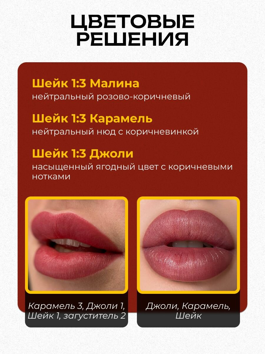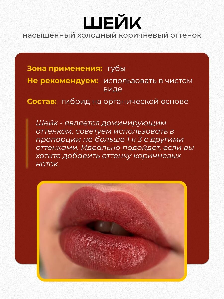 Шейк - тёплый коричневый оттенок, напоминающий сладкую нугу. Хотите добавить темных ноток в микс, тогда оттенок Шейк - то, что нужно. С помощью техники можно регулировать плотность укладки пигмента: от эффекта зацелованных губ до плотного помадного. Не использовать в чистом виде.