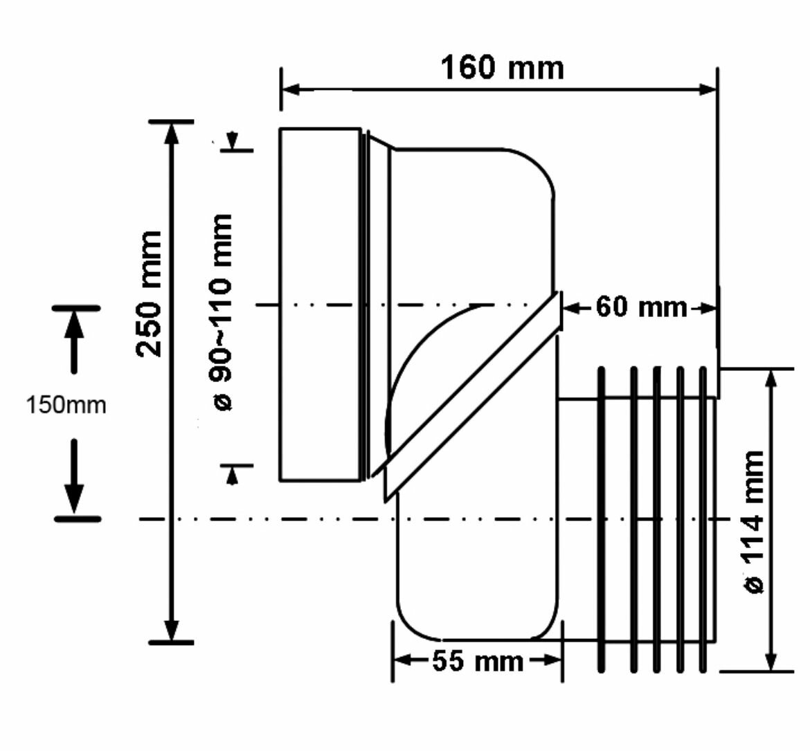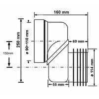 Фановая труба (L160мм) с прокладкой и 150 мм смещением; вход на 90-110мм; выход вставляется внутрь 4"/110мм трубы-1шт.