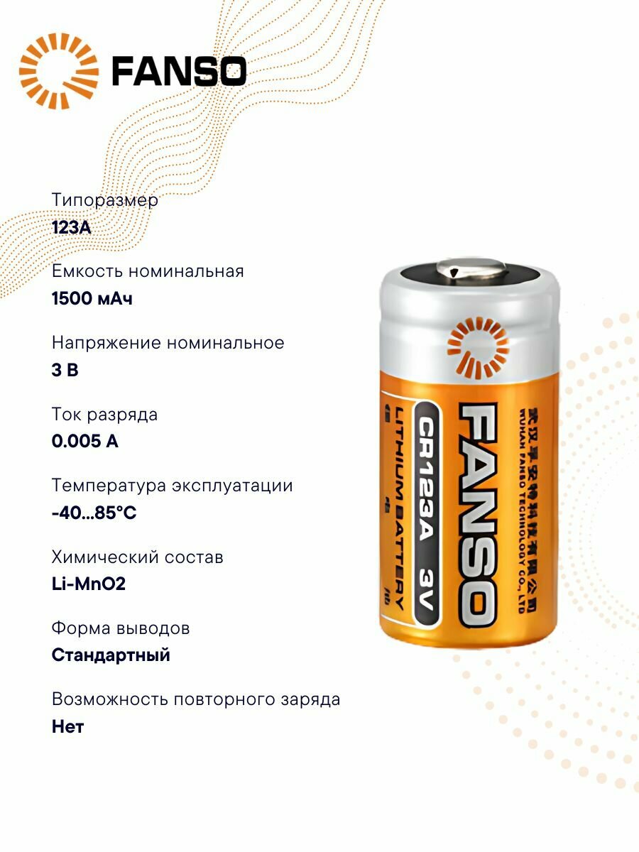 FANSO CR123A/S Литиевая батарейка тип 123А, для фотоаппаратов, GPS-трекеров, морозоустойчивая, Li-MnO2, 20 шт.: сравнение цен, характеристики, фото, актуальное наличие и цены.