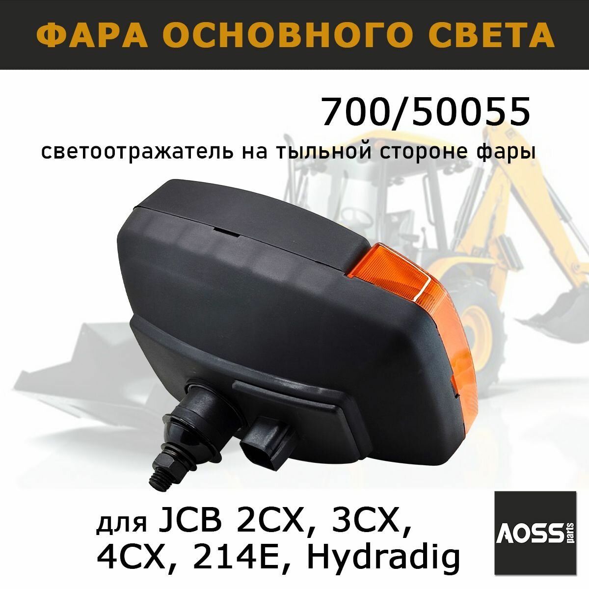 Купить Фара AOSS Parts 700/50055 для JCB 3CX/4CX, прямоугольная, правая, с поворотником с доставкой по всей России.