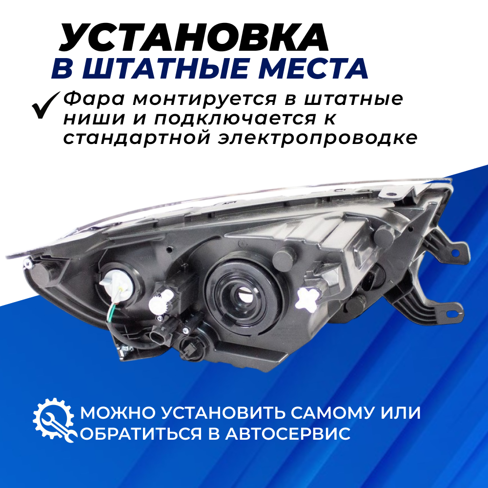 Фара Гранта ФЛ левая монтируется в штатные ниши и подключается к стандартной электропроводке. Замена родных фар на аналог без проблем осуществляется как самостоятельно, так и по обращению в автосервис.