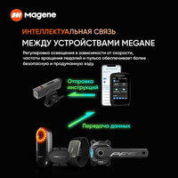 Передний фонарь Magene синхронизируется с GPS-велокомпьютером и обменивается данным с датчиками — каденса, мощности, пульса, а также с задними фонарями. Он автоматически реагирует на скорость, ритм педалирования и частоту сердечных сокращений, обеспечивая максимальную безопасность и комфорт во время поездки.