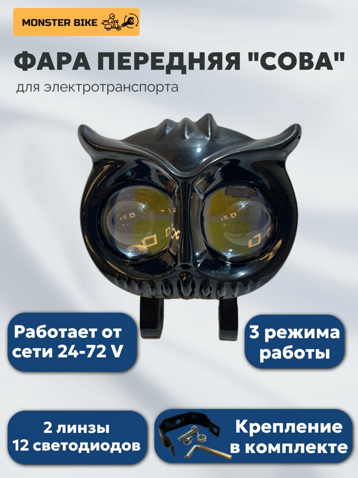 Купить Фара передняя «Сова» для электровелосипеда Monster / электросамоката с доставкой по всей России. Фара передняя «Сова» для электровелосипеда Monster / электросамоката: сравнение цен, характеристики, фото, актуальное наличие и цены.