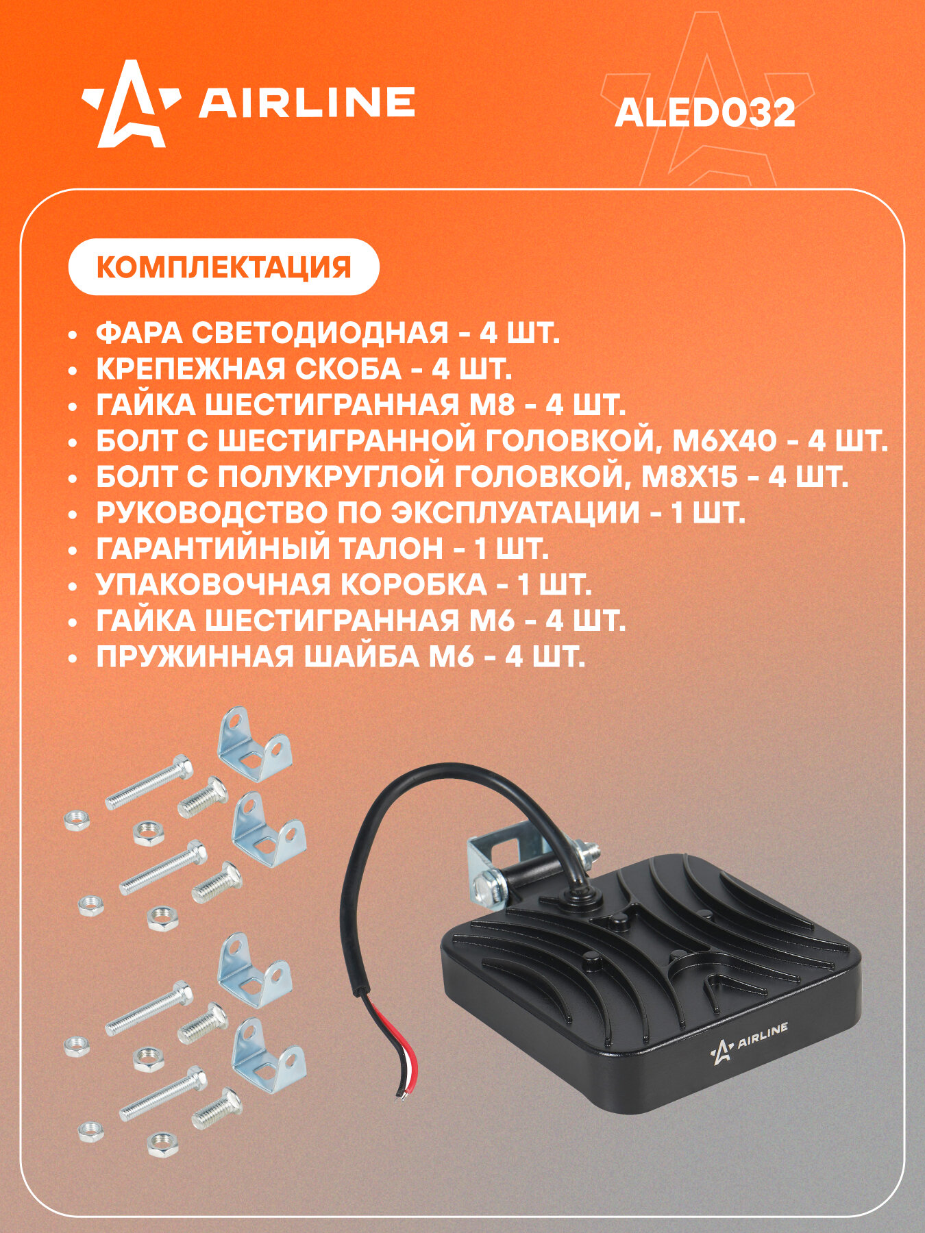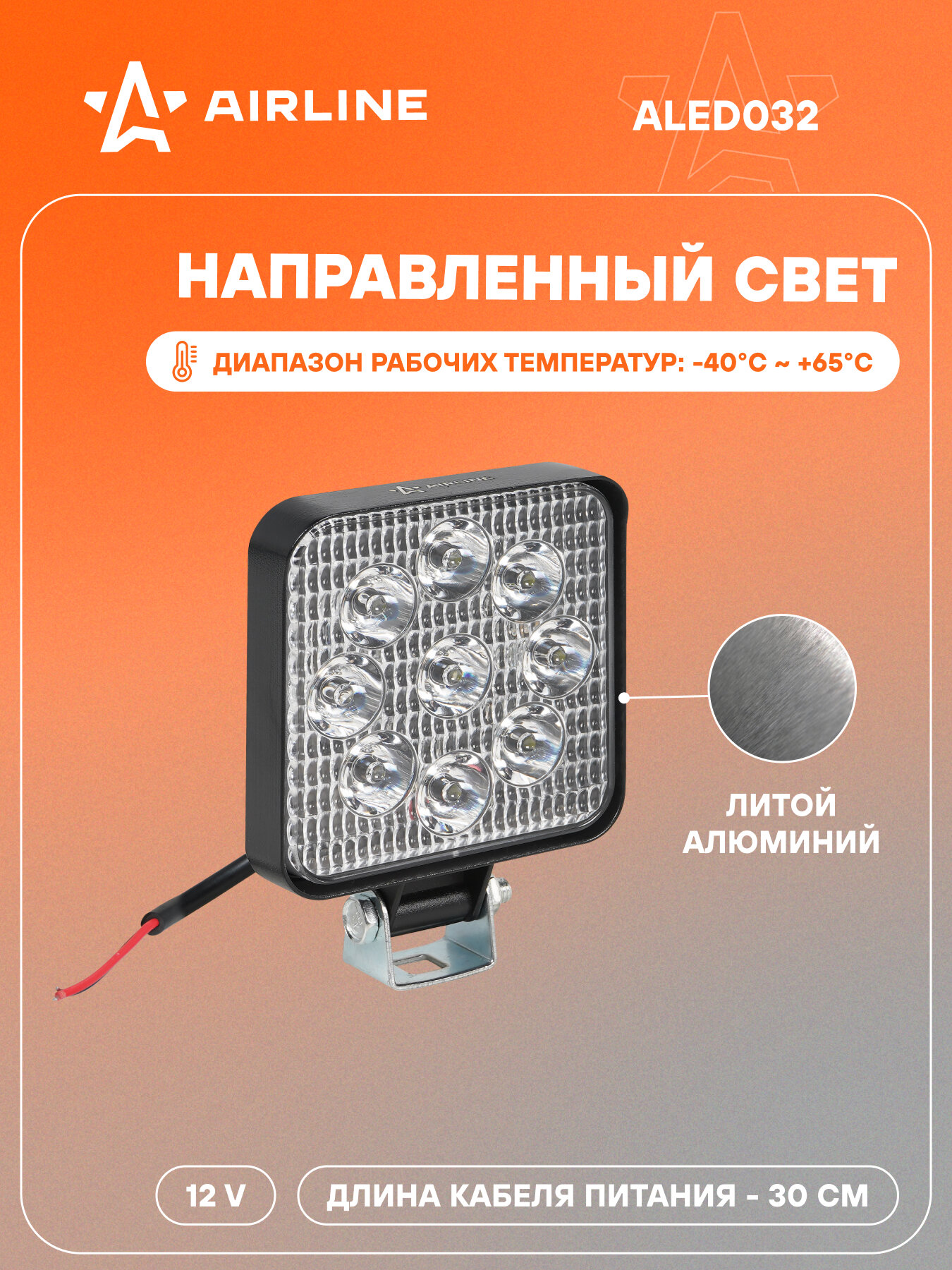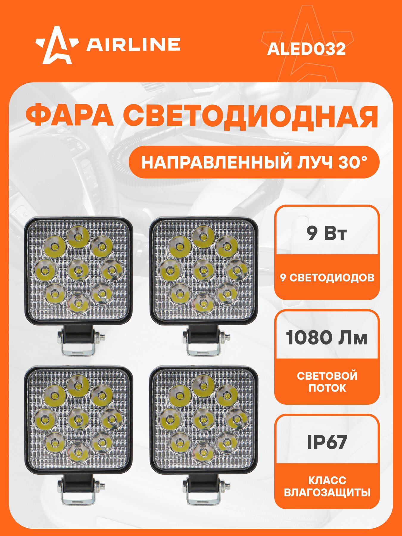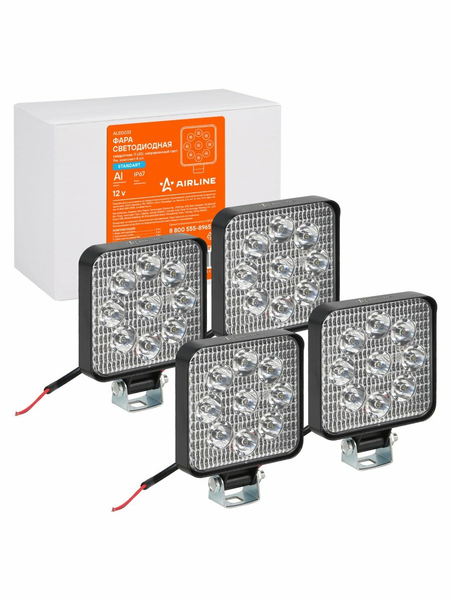 Фара светодиодная квадратная, 9 LED, 4 шт направленный свет, 9 Вт 12 В AIRLINE ALED032: сравнение цен, характеристики, фото, актуальное наличие и цены.