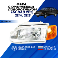 Фара ВАЗ 2114 передняя в сборе с желтым поворотником "Севием" на ВАЗ 2114-13-15, левая 1шт.