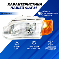 Цена указана за Фара ВАЗ 2114 передняя в сборе с желтым поворотником "Севием" на ВАЗ 2114-13-15, левая 1шт.
