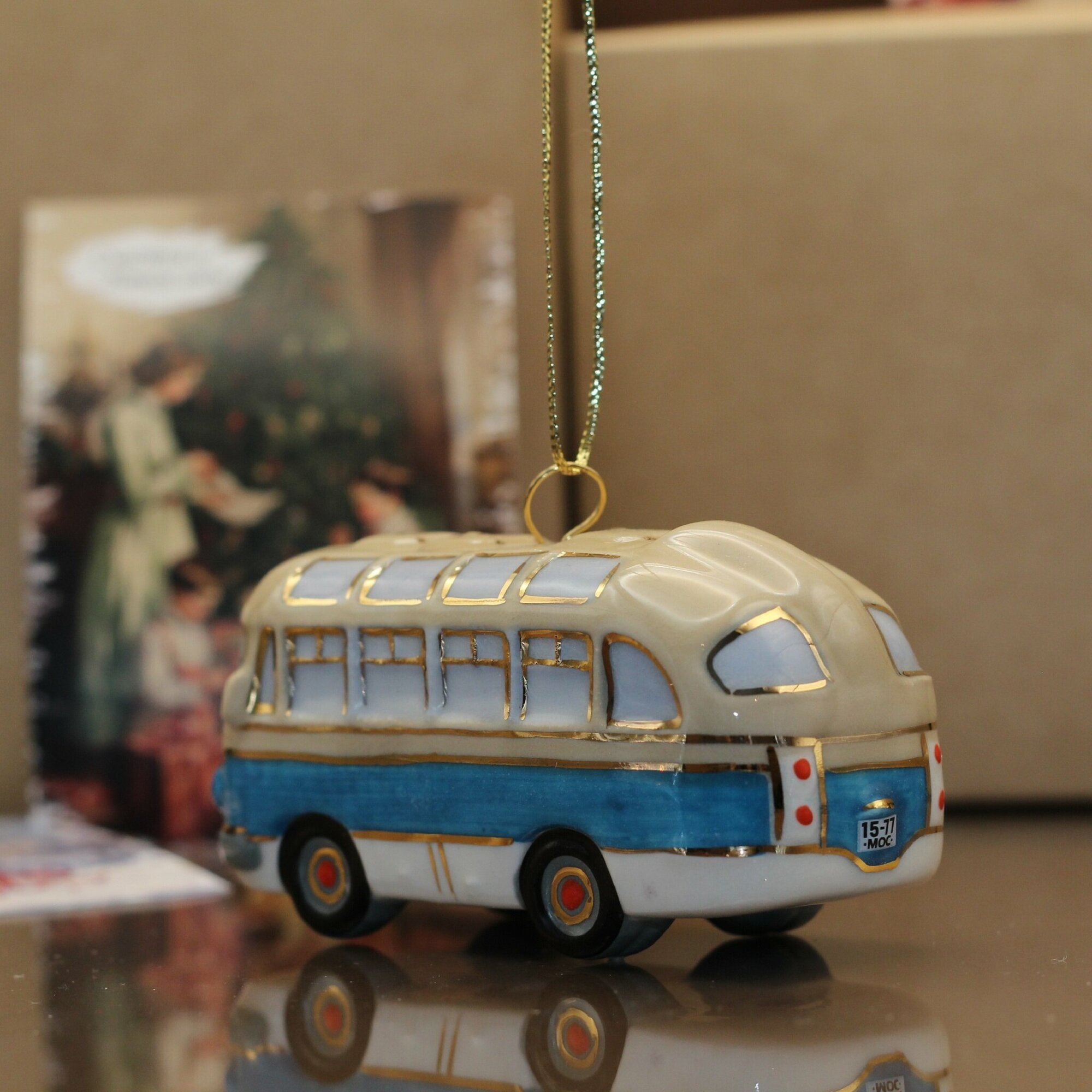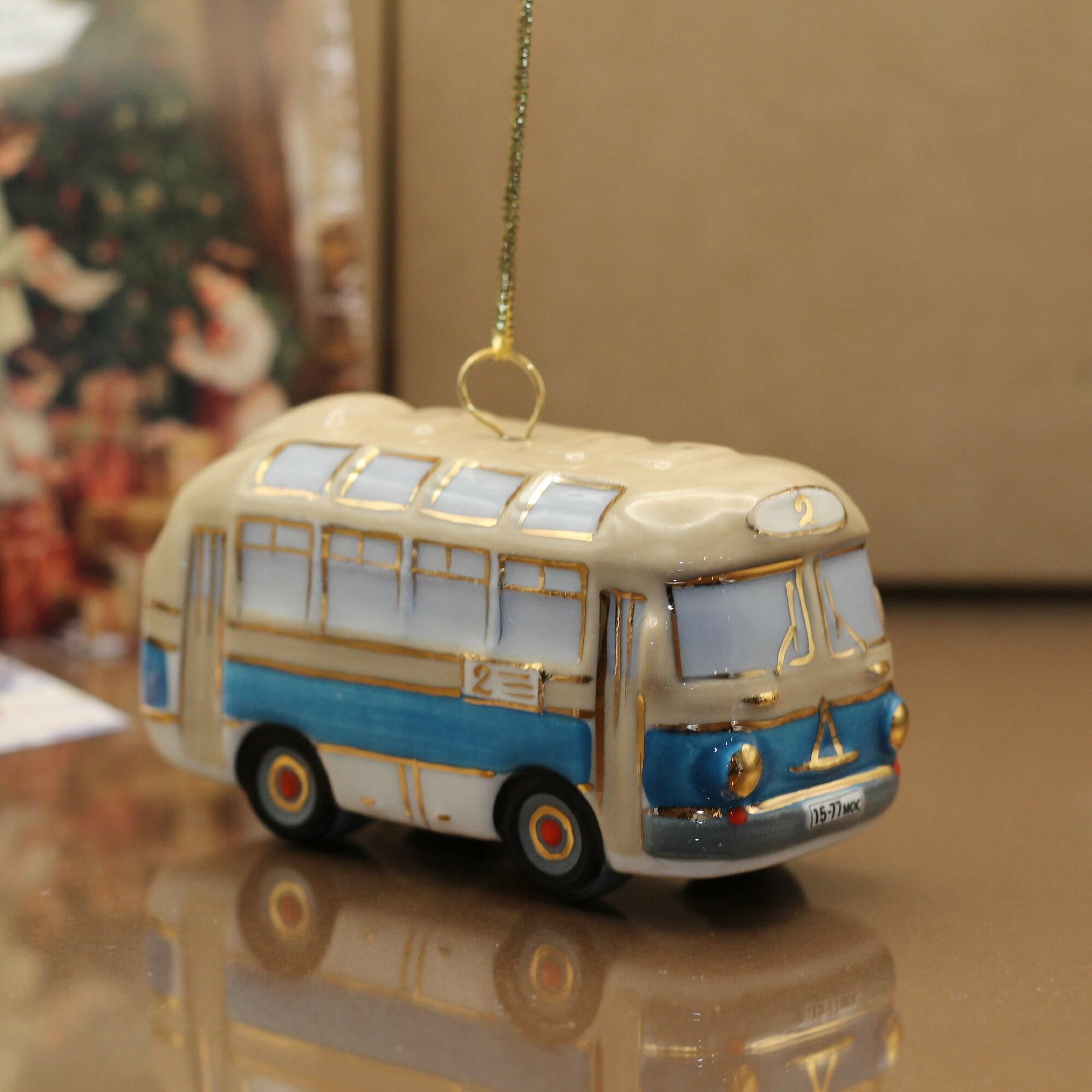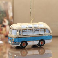 Фарфоровая игрушка "Автобус" изготовлена из глазурованного фарфора с ручной подглазурной и надглазурной росписью. Имеет петельку и поставляется вместе с ленточкой. Оригинальный подарок детям и взрослым к Новому году и Рождеству.