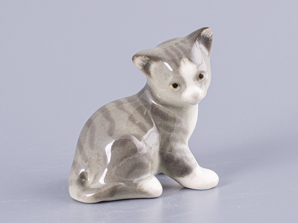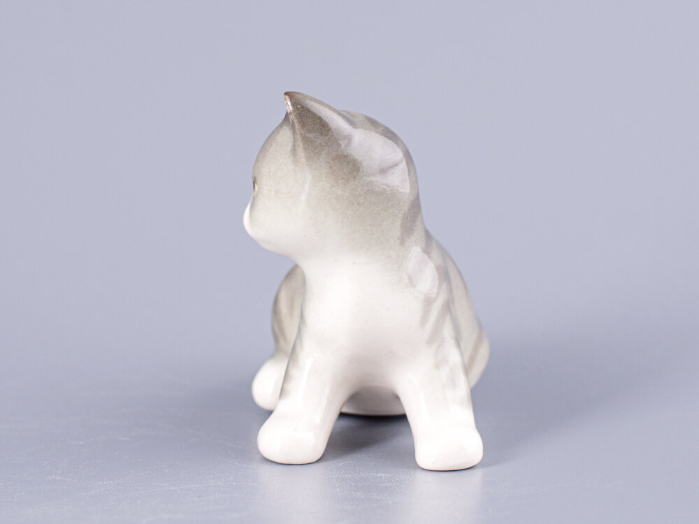 Купить Фарфоровая статуэтка Котенок Парамоша серый , Императорский фарфоровый завод с доставкой по всей России.