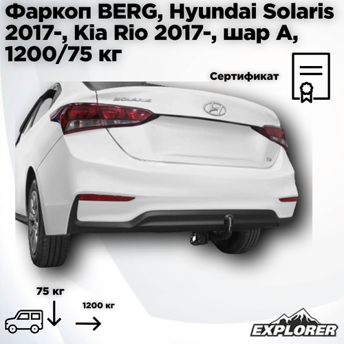 Фаркоп Berg для Hyundai Solaris II 2017-2020 2020-н. в./Kia Rio IV 2017-2020 2020-н. в, шар А, 1200/75 кг, F.2311.001: сравнение цен, характеристики, фото, актуальное наличие и цены.