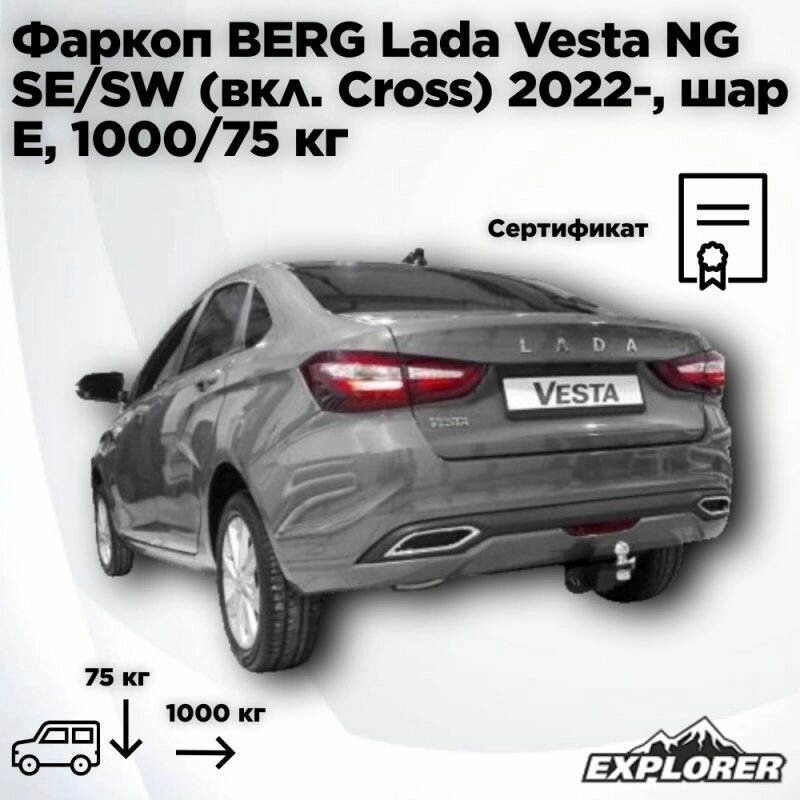 Фаркоп Berg с блоком согласования и электрикой Lada Vesta NG (Лада Веста) SE/SW (вкл Cross) 2022-, шар Е, 1000/75 кг: сравнение цен, характеристики, фото, актуальное наличие и цены.