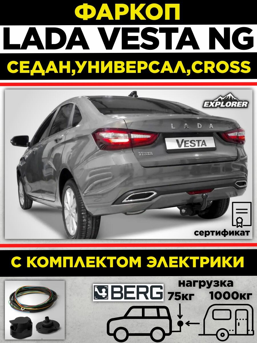 Фаркоп Berg с блоком согласования и электрикой Lada Vesta NG (Лада Веста) седан, универсал (вкл Cross) 2022- н. в.: сравнение цен, характеристики, фото, актуальное наличие и цены.