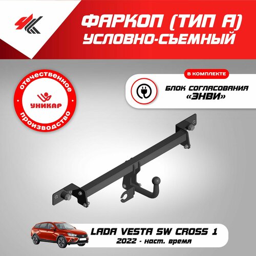 Купить Фаркоп (тип «A») лада веста СВ КРОСС-1 (рестайлинг) 2022-Н. В. «Уникар» + блок согласования «Энви» с доставкой по всей России.