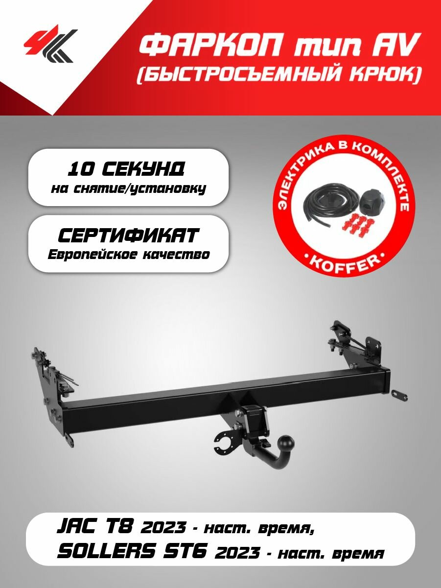 Купить Фаркоп «тип AV» джак Т8 (2023-Н. В.), соллерс СН6 (2023-Н. В.) «PT-Group» + электрика «Koffer» с доставкой по всей России.