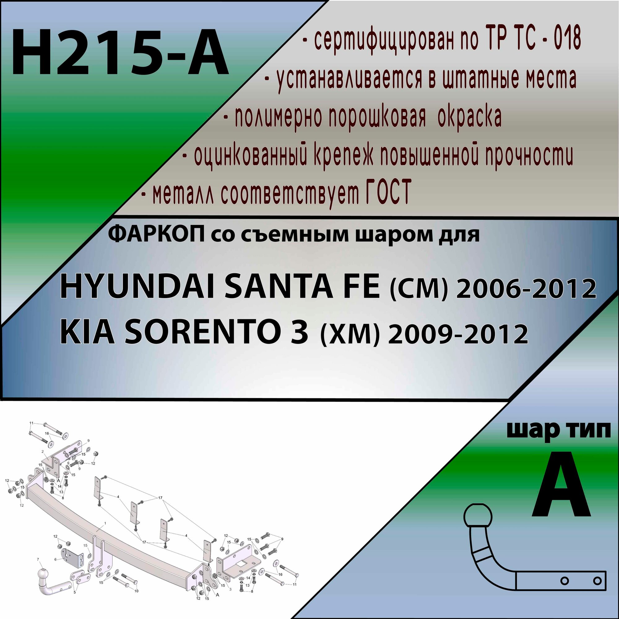 Фаркоп ТСУ для HYUNDAI SANTA FE (CM) 2006-2012/ KIA SORENTO 3 (XM) 2009-2012: сравнение цен, характеристики, фото, актуальное наличие и цены.