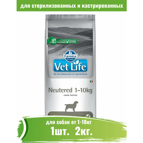 Питание для стерилизованных собак весом до 10кг. Farmina Vet Life Neutered 1-10kg полнорационное и сбалансированное питание для взрослых кастрированных или стерилизованных собак весом до 10 кг для контроля веса и профилактики развития мочекаменной болезни.