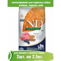 Фармина Н&Д Низкозерновой Ягненок с Черникой - полнорационный корм для взрослых собак средних пород