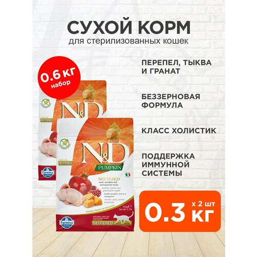 Купить FARMINA CAT N&D GRAIN FREE PUMPKIN NEUTERED QUAIL для кастрированных котов и стерилизованных кошек с перепелом, тыквой и гранатом (0,3 + 0,3 кг) с доставкой по всей России. FARMINA CAT N&D GRAIN FREE PUMPKIN NEUTERED QUAIL для кастрированных котов и стерилизованных кошек с перепелом, тыквой и гранатом (0,3 + 0,3 кг): сравнение цен, характеристики, фото, актуальное наличие и цены.